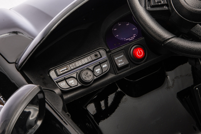 Nu met alle hedendaagse opties zoals: leder look stoel, gordel, BlueTooth, FM, 2.4ghz afstandsbediening, rubberbanden en prachtig diep zwart metallic afgelakt.